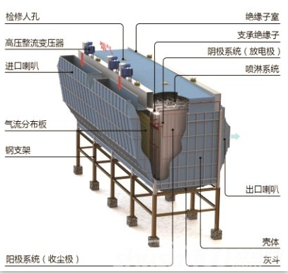 電除塵器的原理及過程:含塵氣體在通過高壓電場進(jìn)行電離過程中,使塵粒帶電,并在電場力的作用下,使塵粒沉積在集塵極上,將塵粒從含塵氣體中分離。整個(gè)除塵過程可劃分為四個(gè)階段:荷電、定向移動、粘附和沖洗。